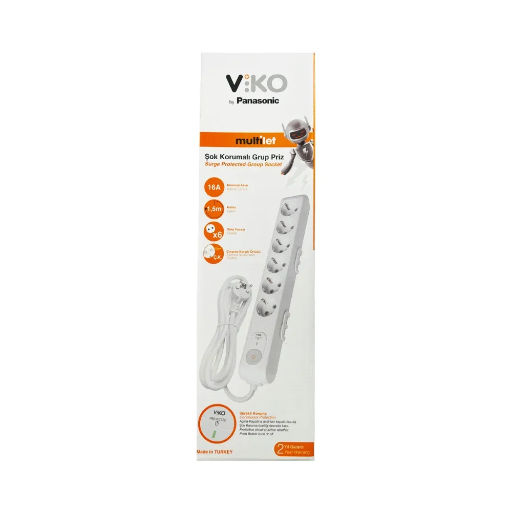Viko 6'lı Akım Korumalı Anahtarlı Grup Priz -1,5m.Kablolu